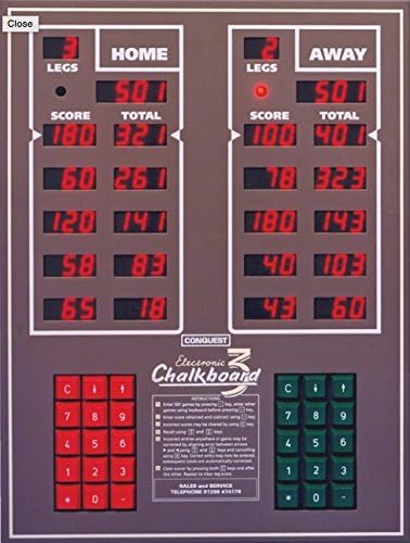 Dispatched with Royal Mail 2nd Class. The Conquest Electronic Chalkboard 3 is the worlds most popular pub scorer- it is the obvious choice for professional dart team scoring. Bright easy to read displays.