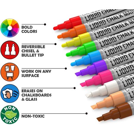 Liquid Chalk Markers Metallic Color Chalk Pens 6mm Bold Tip Erasable Liquid Chalk Pen for. Account Lists. Chalk Markers Erasable Chalkboard Marker Pens Premium Liquid Chalk Markers Neon Pens for Decor 8 Packs Non-Toxic Window Glass Markers Washable 16 Labels Paint Marker Pens for Car Paint Kids Art DIY Craft Rock Painting.